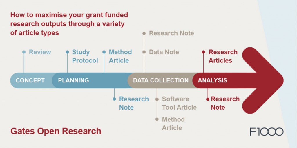 A huge amount of work goes into every research project, and too often much of that work never makes it into the final Research Article. Perhaps it does not fit the narrative of your Research Article, or maybe the word limit is too restrictive. This can lead to this work being left unshared, despite the value it may still have to other researchers. If others were able to utilise this research, it may still influence any work they are planning or prevent them from unknowingly, and perhaps unnecessarily, repeating the work. Gates Open Research offers authors the opportunity to share their work as a variety of article types; providing the option to publish every aspect of their research project, from conception to the final Research Article.